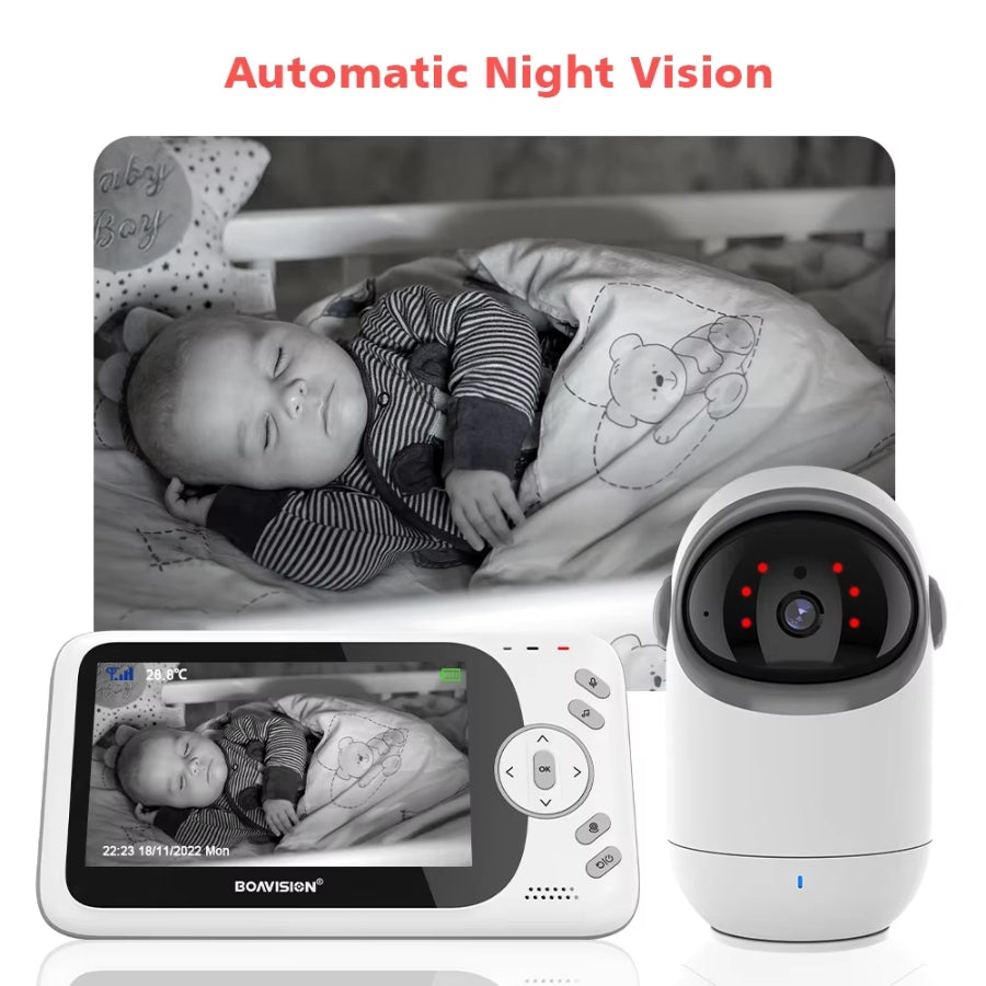 Grâce à son grand écran 4.3 pouces HD, ce babyphone vous offre une visualisation détaillée de votre bébé en temps réel. Doté d’un système audio bidirectionnel, il permet d’entendre et de parler à votre enfant à tout moment. Son capteur de température intégré vous alerte si la chambre devient trop chaude ou trop froide.