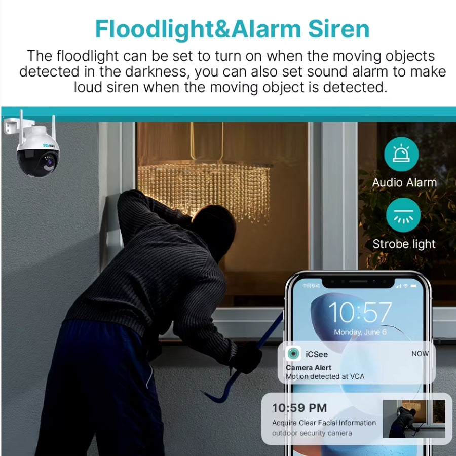 ✔️ Contrôle PTZ à distance via l’application ICSEE pour ajuster l’angle de vue.