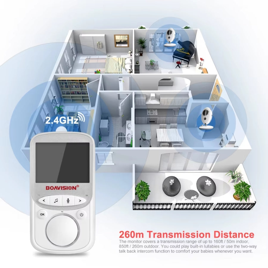 Cette caméra de surveillance vous offre une connexion fiable sans WiFi et une portée de transmission étendue pour garder un œil sur bébé partout dans la maison. Grâce à son écran LCD 2.4 pouces haute résolution, vous obtenez une image nette et fluide, même la nuit grâce à sa vision nocturne automatique.