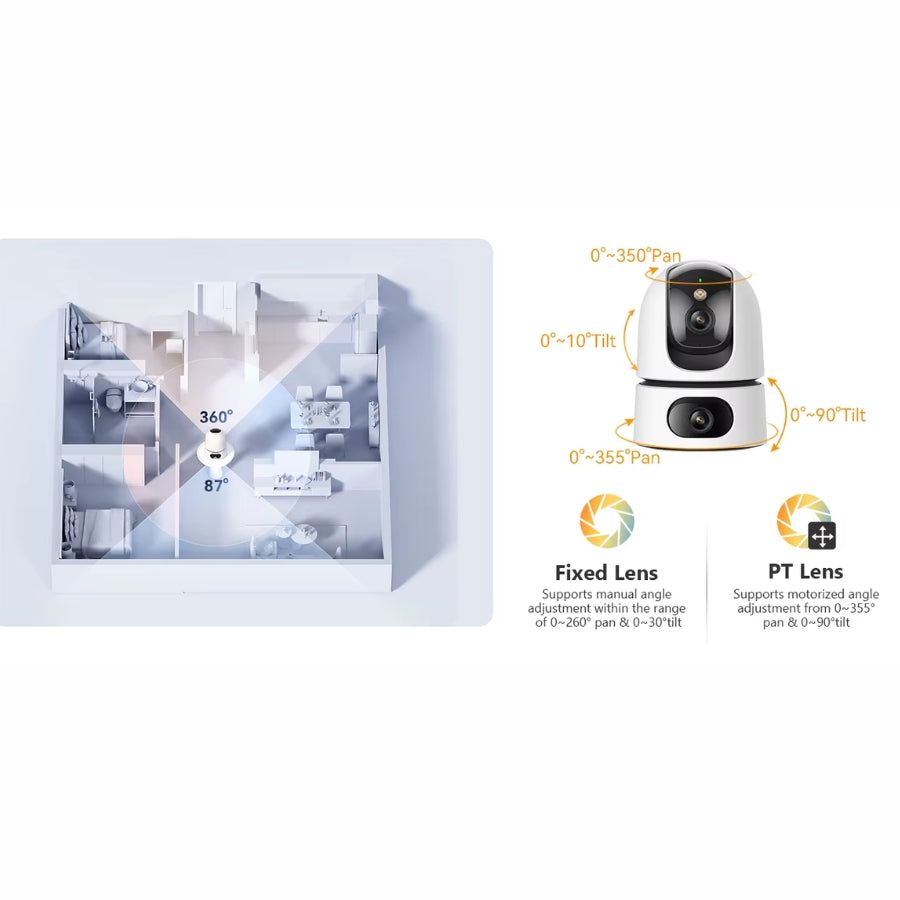 Surveillez votre maison à distance avec cette caméra de surveillance intelligente, qui offre une double vision simultanée, une détection avancée des humains et animaux, et une vision nocturne en couleur.