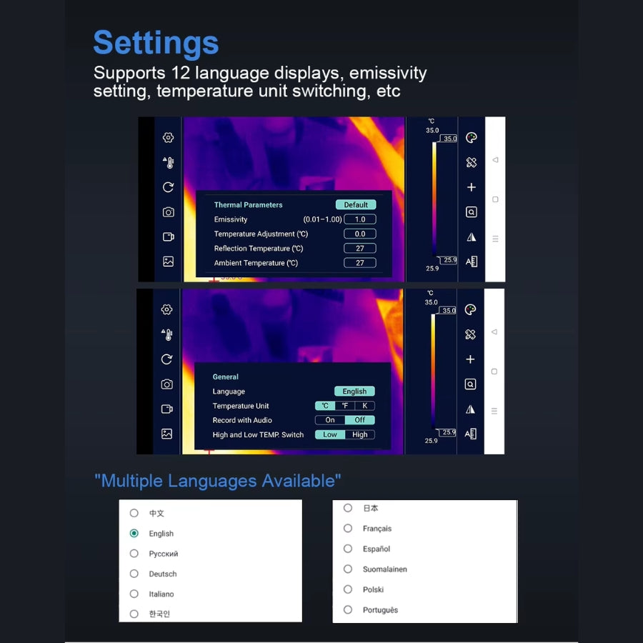 Que ce soit pour la détection de fuites, l'inspection de composants électroniques, la surveillance thermique industrielle ou les diagnostics en bâtiment, cette caméra vous offre une précision professionnelle à portée de main.