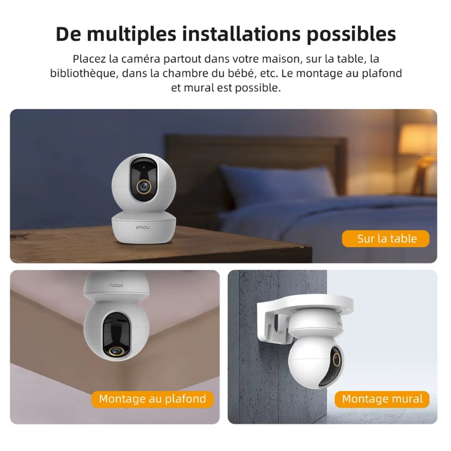 La caméra WiFi intérieur est la solution idéale pour sécuriser votre maison, surveiller vos enfants, vos animaux de compagnie ou vos proches âgés. Grâce à sa vision nocturne améliorée et son intelligence artificielle, elle détecte les mouvements et les bruits anormaux tout en différenciant les humains des animaux pour limiter les fausses alertes.
